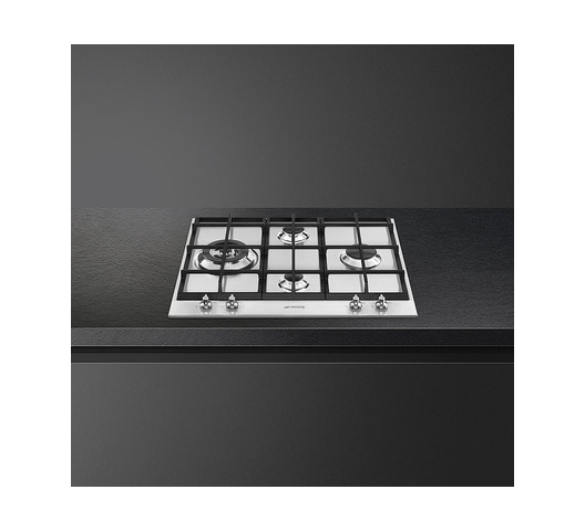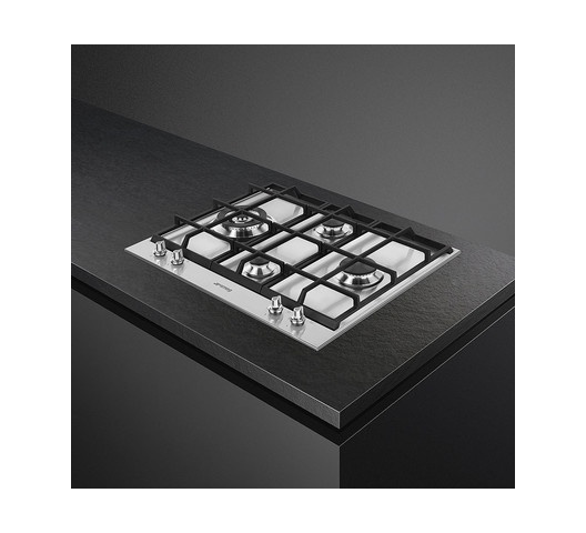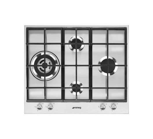 SMEG PX164L 4 Gas Built In HOB WOK, Cast Iron, Stainless Steel - 60CM