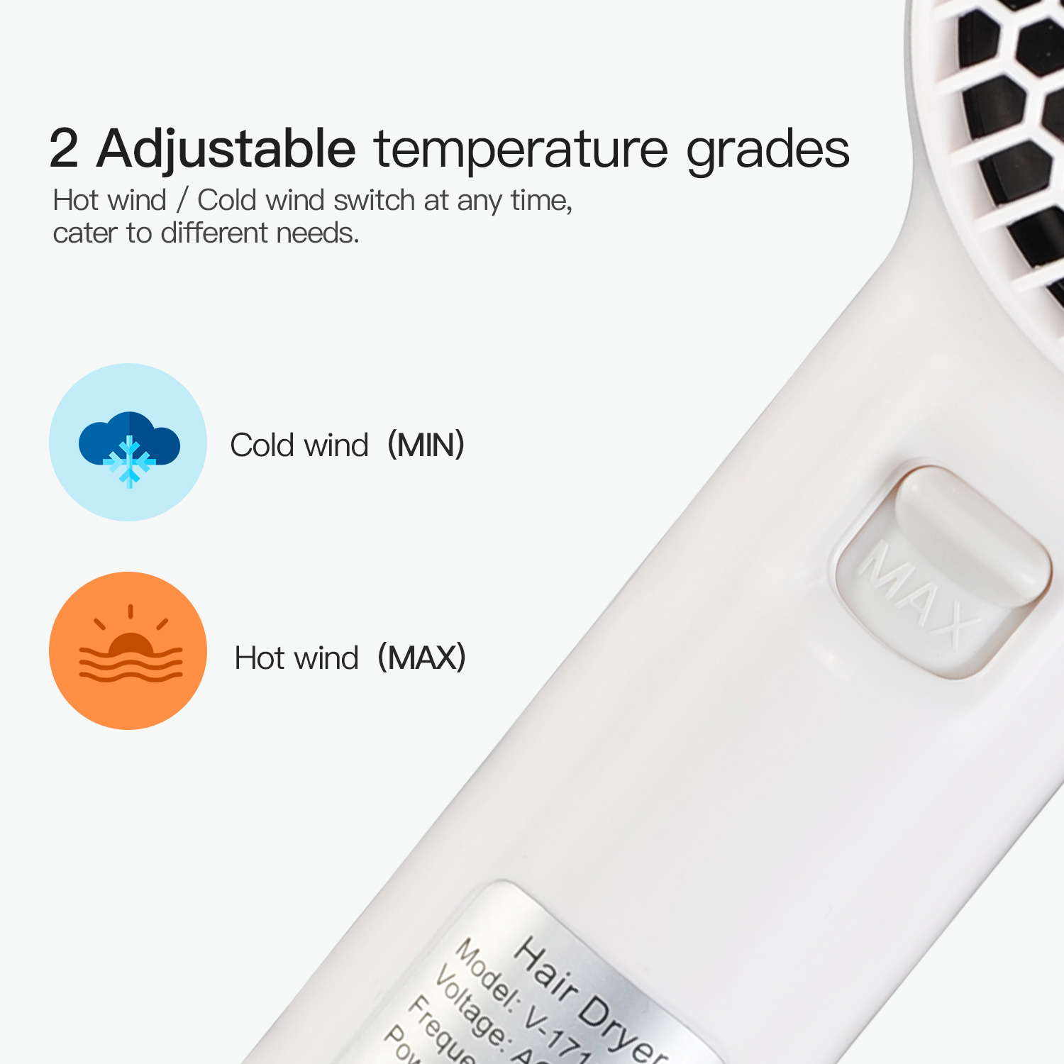 -Fast drying: 1300 watts of turbo drying power, dry your hair quickly.