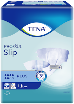 TENA Slip Plus is an open all-in-one incontinence product with adjustable tabs for perfect fit, comfort and leakage protection. Unlike many standard adult diapers, TENA ProSkin Slip have soft textile-like material, a body-close fit and high leakage security and are ideal for someone less mobile or when changing in bed. Thanks to the FeelDry Advanced™ functionality the product quickly draws the liquid away from the surface, keeping the skin dry. The fast absorbing core then rapidly locks in urine, even in larger quantities, for dryness and the fully breathable ConfioAir™ back-sheet allows skin to breathe. All these features help to maintain natural skin health. The open design with strong adhesive tabs enables easy changing when standing or lying down and can be easily re-fastened and adjusted for a perfect, secure fit. For freshness, the product features an Odour Neutralizer and a wetness indicator shows when it’s time to change. TENA ProSkin Slip are available in a large variety of sizes and absorbency levels.