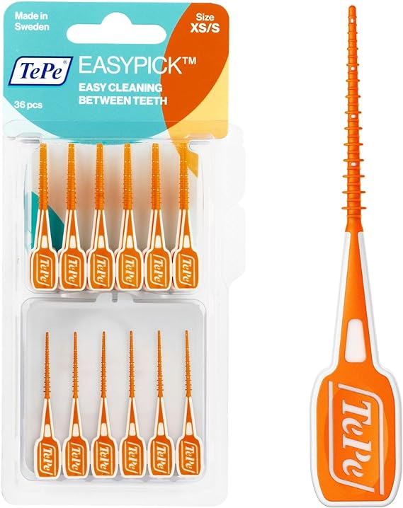 TePe EasyPick™ is recommended for daily use, alone or as a complement to other interdental cleaning products. The pick is suitable for bigger and smaller gaps and can be used by anyone. TePe EasyPick™ is an efficient and easy option when it is difficult to use dental floss, and can also be used by those with implants and braces.