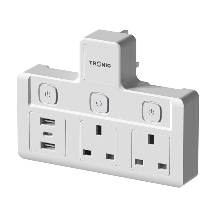 13A 3-Gang UK Socket Adaptor with USB & Type-C