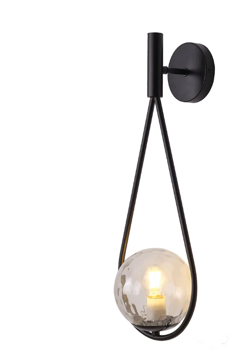 Tronic PL 1166-01-BK Teardrop Glass Accent Black Finish Wall Light