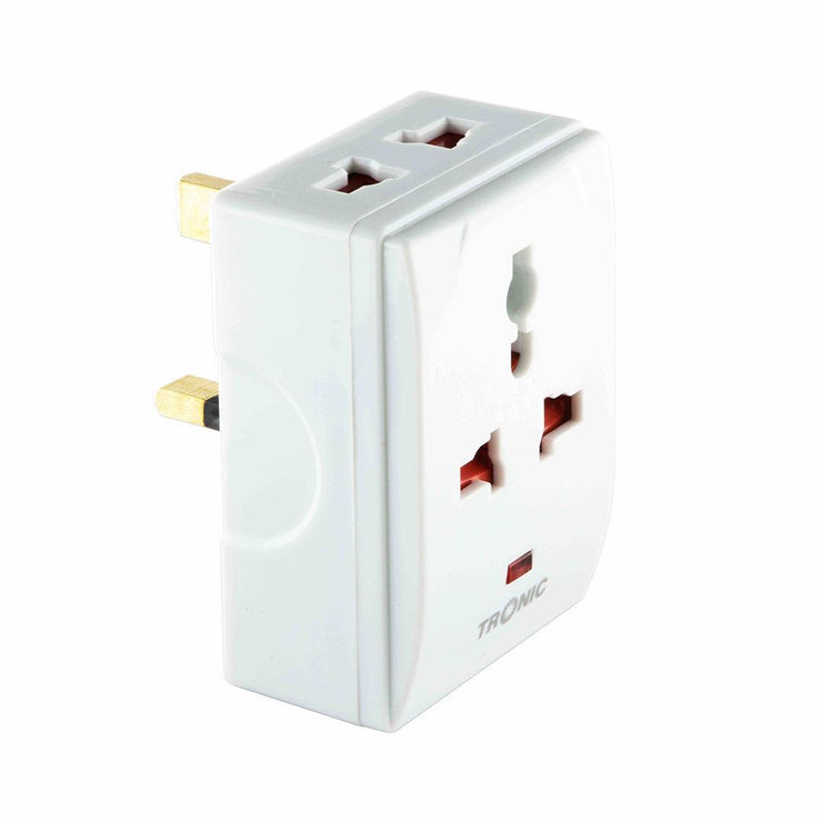 Tronic 13A multiplug with neon allows you to plug in more than one appliance at a time also has a universal type socket meaning it can fit both a round pin or the square ones.