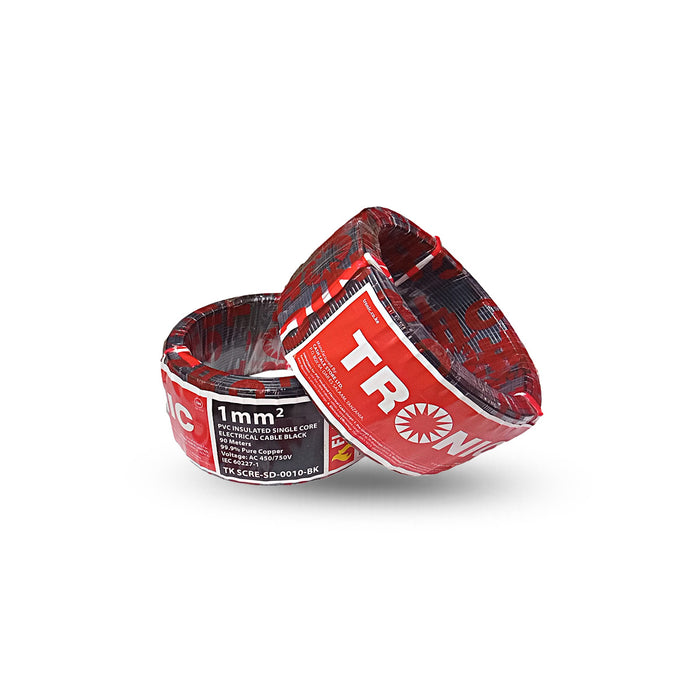 Tronic TK SCRE-SD-0010-BK Black 1mm Electrical PVC Insulated Cable Single Core