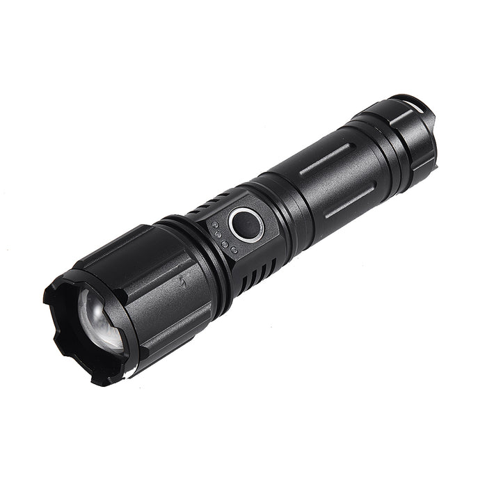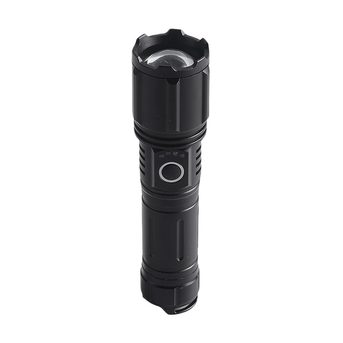 This compact yet powerful LED flashlight delivers reliable brightness and durability in every environment. Built with an aluminum alloy body and fitted with a high-performance P90 LED bulb, it emits up to 800 lumens of brightness. With zoom functionality, a power indicator, and a light range of up to 1000 meters, it’s perfect for outdoor adventures, security patrols, or home emergencies. Rechargeable via Type-C with a 3000mAh battery, it runs for approximately 4 hours when fully charged. Its rugged design and IP65 rating make it dependable even in tough conditions.