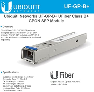 - Ubiquiti Networks UFiber Class B+ GPON OLT SFP Transceiver Module UF-GP-B+ Single-Mode Fiber for UFiber OLT