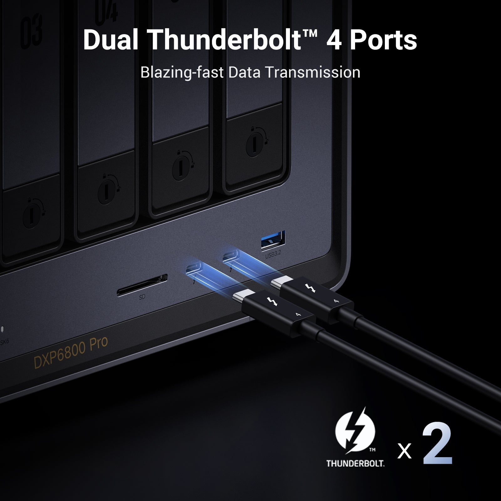 Dual 10GbE Network Ports: Two 10GbE high-speed network ports that can be aggregated into 20G bandwidth for download speeds of up to 2500MB/s.