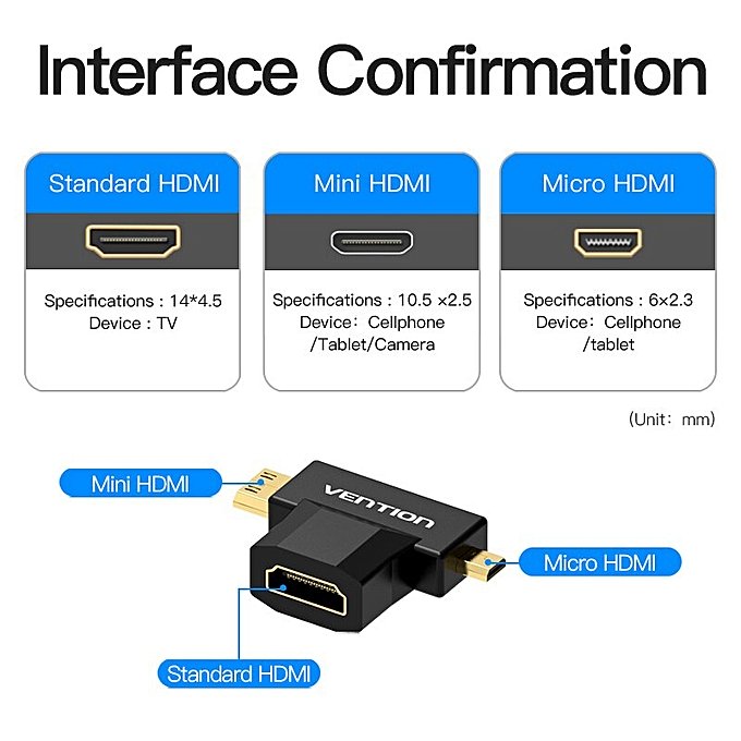 VENTION MINI HDMI MALE + MICRO HDMI MALE TO HDMI FEMALE ADAPTER