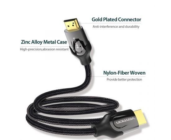 Vention Nylon Braided HDMI Cable 8M Black Metal Type