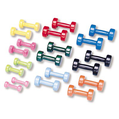- Steel dumbbell with colorful vinyl exterior coating for a strong, non-slip grip