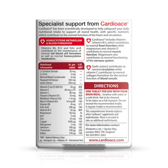 Swallow each with water or a cold drink. Not to be chewed. Do not exceed the recommended intake. Only to be taken on a full stomach. A regular intake is recommended. This comprehensive formula replaces other Cardioace supplements and multivitamins. There is no need to take an additional multivitamin.