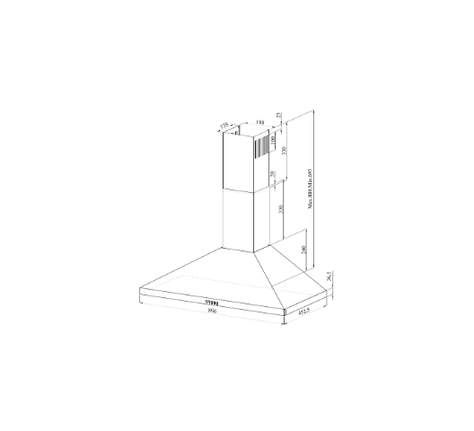Von VBDP931MFX Built-in Chimney Hood, 90cm - Stainless Steel