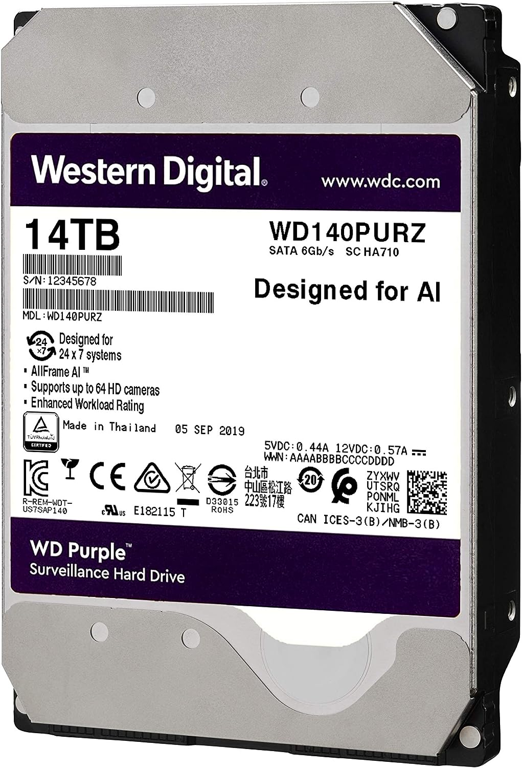 Western Digital WD140PURZ Purple 14TB Surveillance Hard Drive