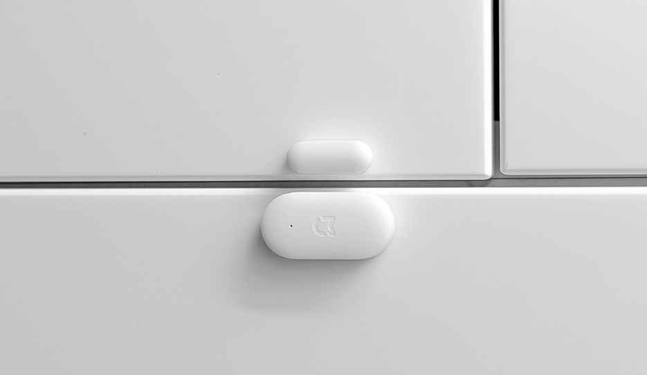 This window/door sensor includes a main sensor body and a magnet, which work together to determine whether the window/door is open or closed.