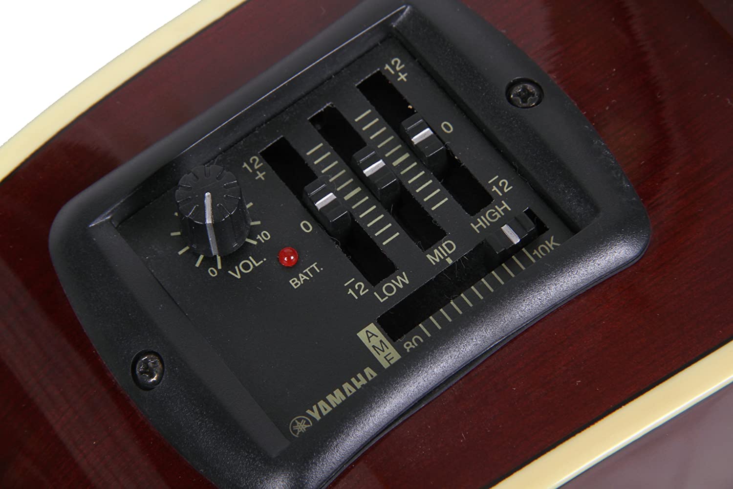 Controls for the under bridge mounted piezo pickup are mounted on the instrument's side for optimum access. The battery compartment is also located on the side, close to the neck, to provide easy replacement. * The FX utilizes a passive pickup system therefore, it does not require a battery box.
